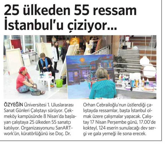 Özyeğin Üniversitesi ve SanARTworK koordinasyonu ile Üniversitenin Çekmeköy kampsünde düzenlenen çalıştay'da Almanya , Çin, Mısır , Rusya , Azerbeycan , Fransa , İspanya , Yunanistan , Özbekistan , Hollanda, İsveç , Slovakya , Sırbistan , Tacikistan , Meksika , Finlandiya , Polonya , Bulgaristan , İtalya , Filistin , Danimarka , Güney Kore, Yemen, Hırvatistan , Bosna Hersek , KKTC ve Türk resim ve heykel sanatçıları öğrenciler ve akademisyenler ve tüm üniversite bünyesinde bulunanlarla birlikte resim çalışmaları yaparak sanat ile iç içe günler geçirdiler.